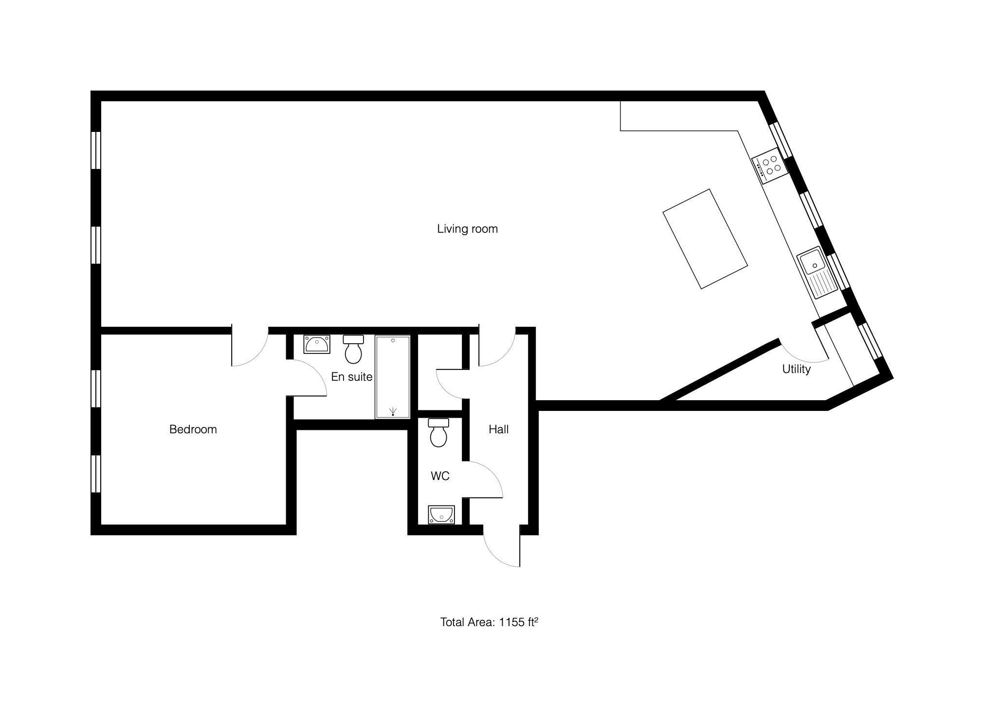 Offering a staggering internal area of more than 1,100 square feet, this ground floor property offers luxury accommodation which includes the vast living space, separate WC, double bedroom with en suite and separate WC.
