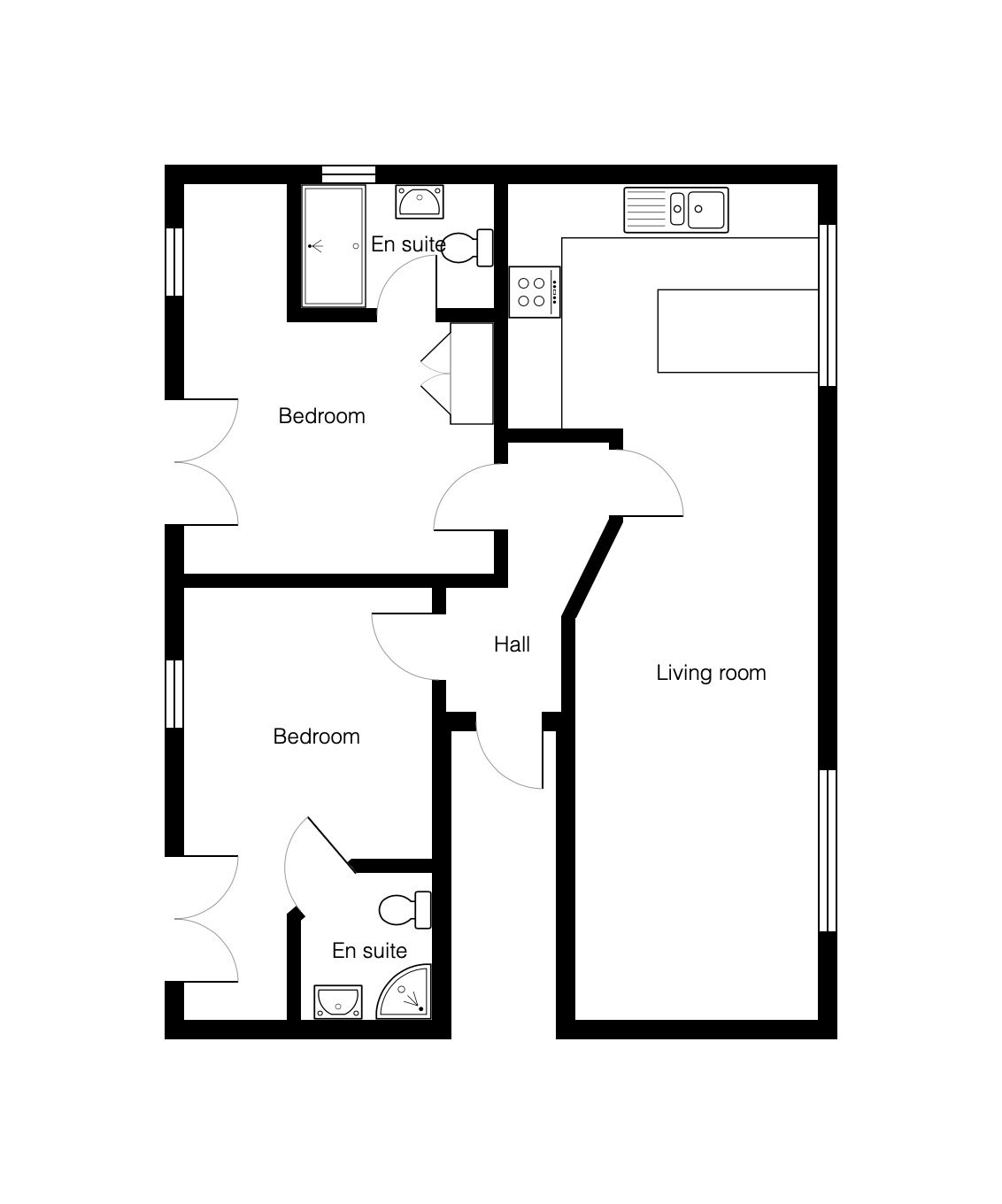 Entirely renovated throughout to an exceptionally high standard, this beautiful second floor apartment is extremely spacious, with great ceiling height, and offers two bedrooms, two shower rooms and a large living space with well equipped kitchen.