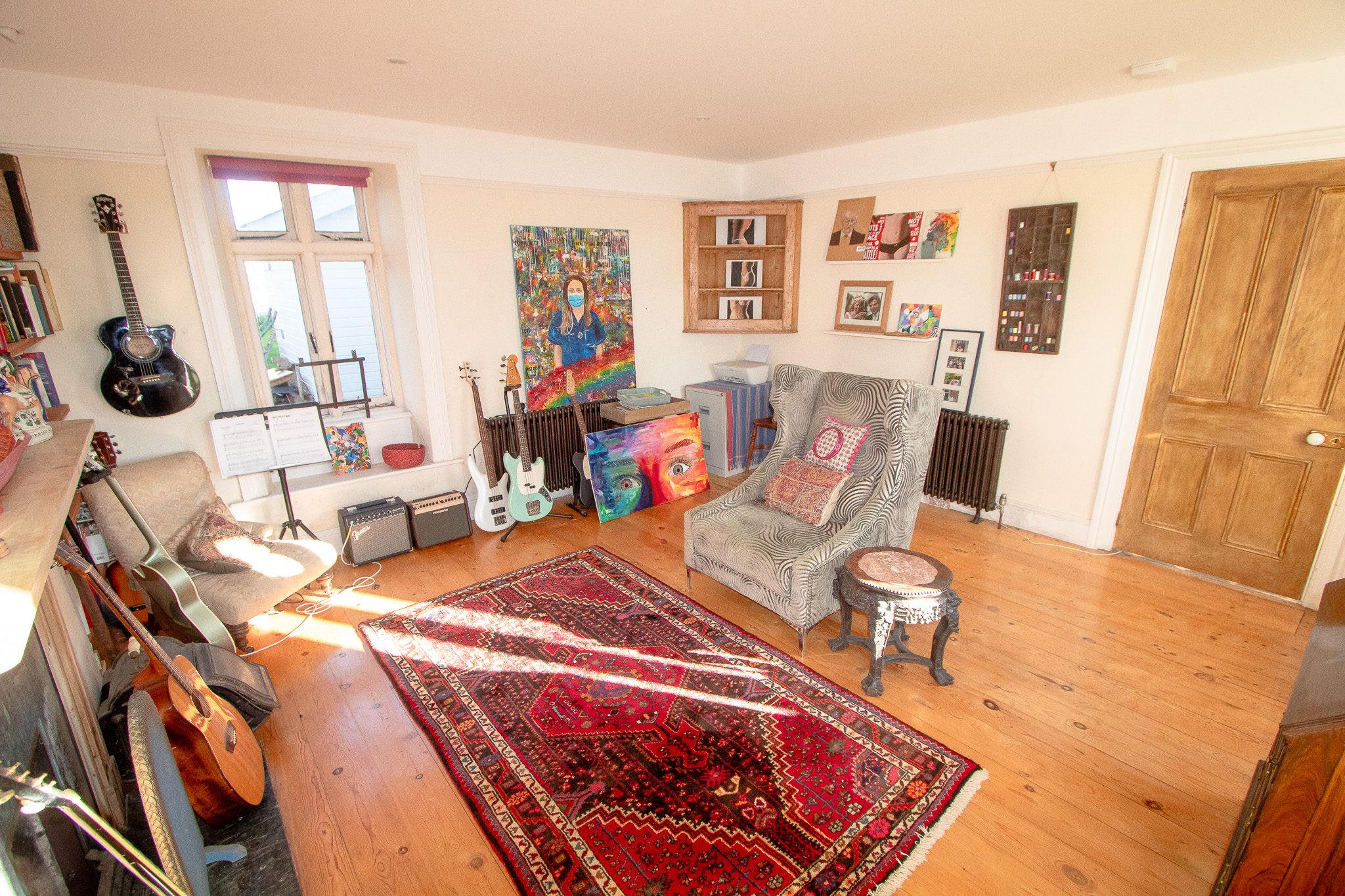 The property has parking for up to four cars with the chance to create more, while the garden is both private and sunny, with several patio areas and a generous lawned space ideal for active children.