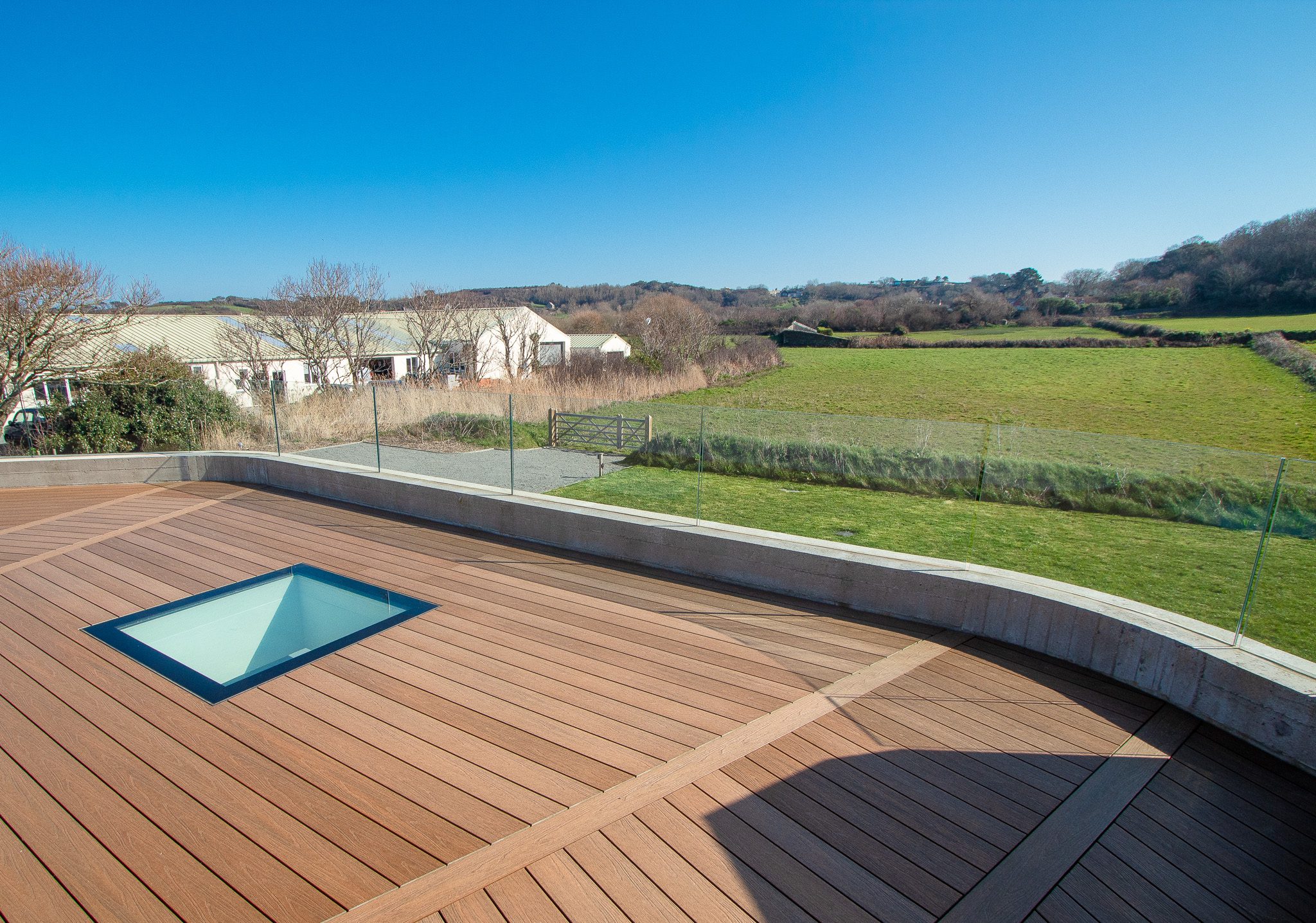 Outside there is a formal lawned area, large patio and steps leading to a stunning roof terrace with mesmerising rural views.